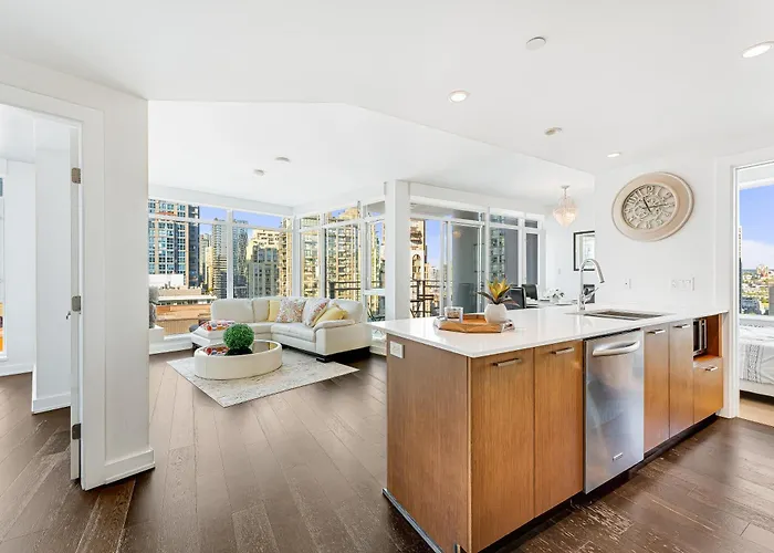 **Welcome to the Luxurious 2-Bedroom Retreat With Panoramic Cityscape in Downtown Vancouver**, where sophistication meets comfort in the heart of the city. This exquisite retreat offers a harmonious blend of convenience and elegance, making it the perfect sanctuary for both business and leisure travelers. Step inside, and you'll find yourself embraced by a chic atmosphere, where each detail has been thoughtfully curated to ensure an unforgettable stay.